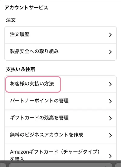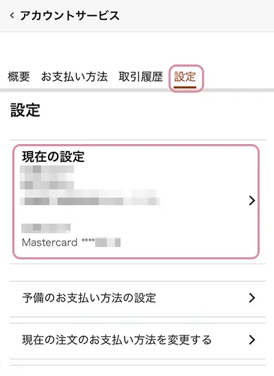- [アカウントサービス] → [お客様のお支払い方法] → [設定] → [現在の設定] から登録